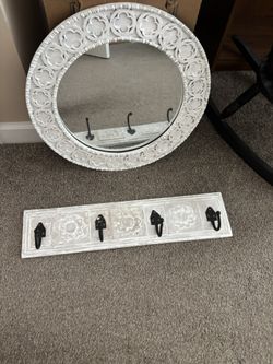 Rustic Wall Mirror & Matching Hook Rack Set – Distressed White Finish$40Port St. Lucie, FL
