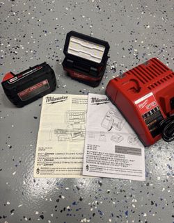 Sold🔥 Milwaukee M18 Rover 1000 Lumens Flood Light + M18 2.0 Battery + M12 & M18 Charger $145Haines City, FL