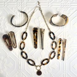 9 Piece Tortoise Shell & Gold Jewelry & Accessories Bundle$18Santa Maria, CA
