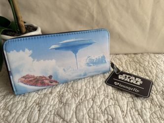 NWT Disney Loungefly Star Wars Falcon Cloud City Blue Zip Around Wallet 8x4$45Broken Arrow, OK