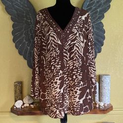 Vintage Animal Print With Jewels Long Blouse Shirt
