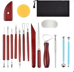 24-Piece Pottery and Clay Sculpting Tool Set with Wooden Handles – Includes Carrying Pouch