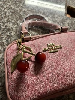 Women’s pink coach bag with cherry charm. $75Eugene, OR