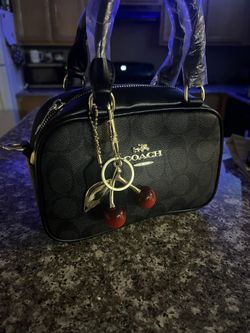 womens Black Coach bag with cherry charm$75Springfield, OR