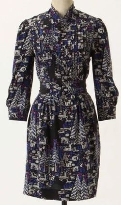 Anthropologie plenty Myths & Legends Silk Dress Deer Trees Forest dress rare 0