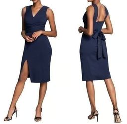 DRESS THE POPULATION Alessia Tie Waist Crepe Dress, Navy, Size Large, NWT