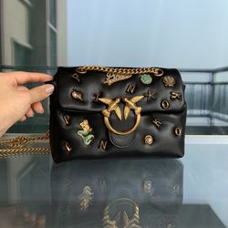 Pinko Metal Logo Shoulder Bag Black $300Newark, NJ