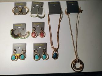 Style & Co. Jewelry Lot–Earrings & Necklaces–Gold Tone & Turquoise–New on card$150Stafford, TX