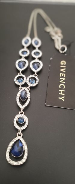 Givenchy Silver-Tone Pavé Stone Lariat Necklace 16"+3" Navy Crystal$40Stafford, TX
