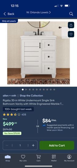 30 Inch Bathroom Vanity Allen Roth$400Orlando, FL