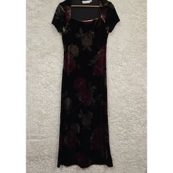 Dressbarn Velvet Dress Women 8 Black Floral Stretch Square Neck Romantic Cottage $65Decatur, AL