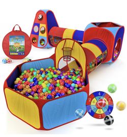 New 5pc Kids' Play Tents & Tunnels - Ball Pit for Toddlers, Basketball Hoop, Crawling Tubes, Pop-Up Playhouses, Baby Obstacle Course for Indoor or Out$30West Covina, CA