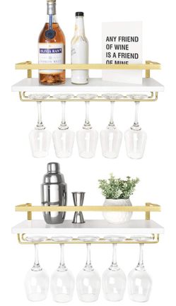 New Wall Mounted Wine Rack Set of 2 White Wood Wine Bottle Glass Holder Floating Shelves with Stemware Hanger Modern Plants Photos Wine Display Storag$15West Covina, CA