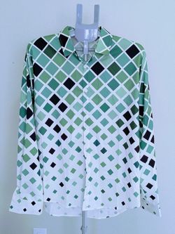 Men’s Green Geometric Print Button-Up Shirt – Long Sleeve Collared Casual & Smart Shirt$25Irving, TX