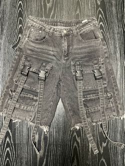Men’s Black Denim Cargo Shorts with Buckle Strap Detail – Streetwear Style$30Brooklyn, NY