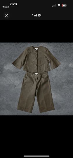Newport News Leather 2 Piece Olive Green Jacket Sz-10 & Pants Sz-12P Suit Set$80Zephyrhills, FL
