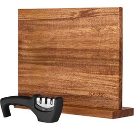 KASSEL Magnetic Knife Block with Knife Sharpener | Double-Sided Acacia Wood Magnetic Knife Holder | Kitchen Knife Display Stand for Countertops | Stro$55West Jordan, UT