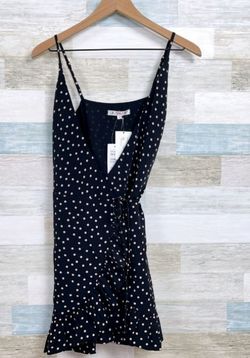 Joy Joy Sleeveless Ruffle Tie Waist Wrap Dress Black Polka Dot Womens