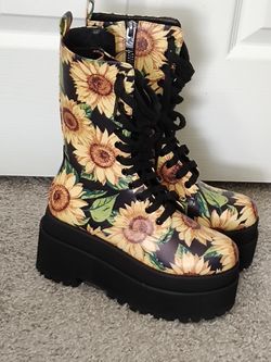 Dollskill Current Mood Petal To The Metal Sunflower Platform Combat Boots$70Melbourne, FL