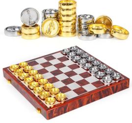2-in-1 Metal Chess and Checkers Set, Luxury Wooden Foldable Chessboard$35Chicago, IL