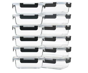 12 Pack 22oz Glass Meal Prep Containers, Food Storage Containers with Lids, Air-Tight, Leak-Resistant, Freezer to Microwave Safe - Grey Set Overall$30Chicago, IL
