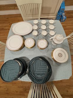 Lenox China Set with Salad Plates, Saucer, Dinner Plates, Platter, Teapot, Teacups, & Bread Plates$400Pompton Plains, NJ