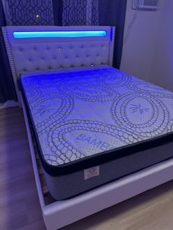 Queen Bed Platform Bed W/ Built-In LED Lights Mattress Included. 🪇 Cama Queen Size Con Luz Led Colchon Incluido Nueva en caja $749Riverside, CA
