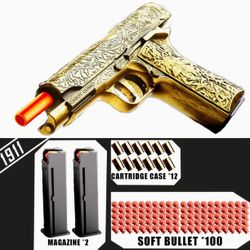 [Engraved Toy Gun] Upgraded M1911 Engraved Toy Gun | Soft Cartridge, Short Bit Suspension, One-Key Throw, Pull Back Action & Magazine Clip - Black, Sp$26Chicago, IL
