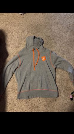 Grey Nike hoodie with neon orange string and Nike symbol$25North Fond Du Lac, WI