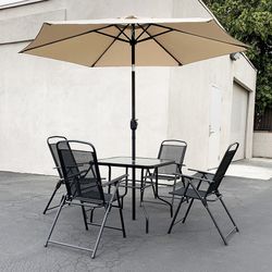 (Brand New) $140 Outdoor 6pcs Patio Set with 32x32” Table, 4pc Folding Chairs and 10ft Tilt Umbrella $140El Monte, CA