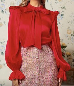 Tie Neck Ruffle Trim Lantern Sleeve Blouse Size L$15Whittier, CA