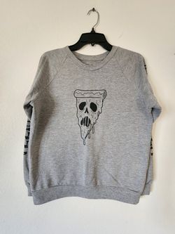 Freeze Gray Skull Pizza Graphic Crewneck Sweater Medium $40Hesperia, CA