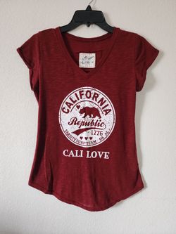Y2K Reflex Maroon California Republic V-Neck Tee - Medium - Slim Fit$18Hesperia, CA