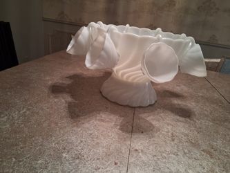 Vintage 1950's Hazel Atlas Alpine White Swirl 10" Punch Bowl W/ Pedestal And 8 2 1/4" Hanging Cups$45Cypress, TX