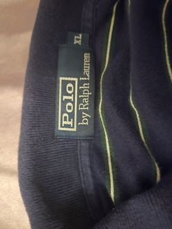 This is a Polo Ralph Lauren men's long-sleeve polo shirt in a navy blue and white striped pattern. $20Burbank, CA