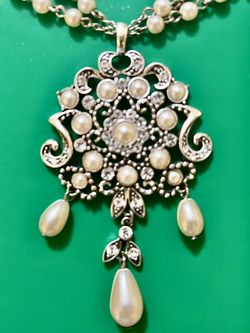Vintage Costume Jewelry Pearl & Rhinestone Pendant Necklace $12Saratoga Springs, NY