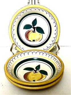 1942-‘78 (3) Stangl Pottery “Fruit” Salad Plates, Hand-carved, Hand-painted, Artist-signed, 8-1/8” $15Saratoga Springs, NY