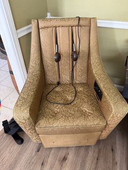 Rare vintage Mid-Century Modern electric massage chair in original gold damask upholstery.$995Fresno, CA
