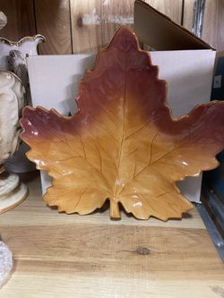 Russ Hand Paintind Brown Hazel Leaf Shape Service Dish$20Edison, NJ