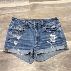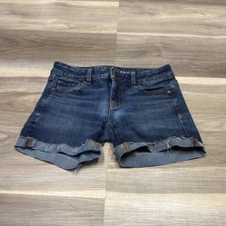 us American Eagle Outfitters high rise shortie Blue Denim Shorts size 4