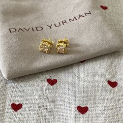 David Yurman 18k gold champagne citrine and diamond stud earringss