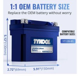 TYKOOL YT12B-BS 12V 6Ah 360CCA Motorcycle Scooter Lithium LiFePO4 Battery$79Gardena, CA