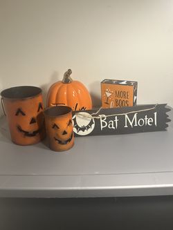 Halloween Decorations Bundle – Pumpkin Decor, Jack-O-Lantern Candle Holders & Bat Motel Sign$11New Castle, DE