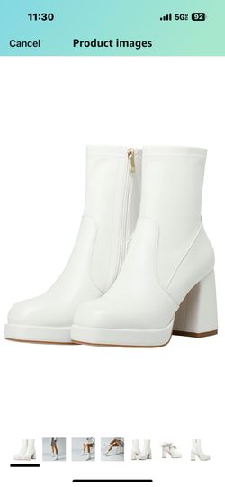 Women's Square Toe Block Heel Boots, White Summer Fall Heel Boots$40Rossmoor, CA