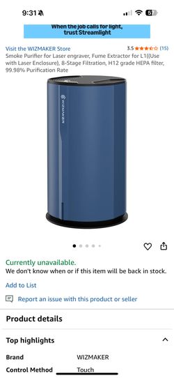 Wizmaker Smoke Purifier WM-AP001$85Long Beach, CA
