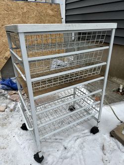 All metal storage shelves on wheels. Six baskets. 14.25x21.5x33$45Elmwood Park, NJ