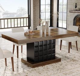 F2120 63'' Dining Table for 4-6, Farmhouse Wooden Rectangular Dinner Table with Geometric Relief, Pedestal Base (Brown and Black)$120La Mirada, CA