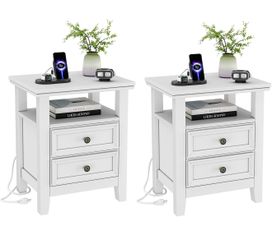 New assembled Nightstand Set of 2, White Night Stand with Charge Station, 20” Sofa End Table with Storage Shelf, Bed Side Table with USB Ports & Outle$120La Mirada, CA