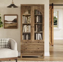 YT0015 Farmhouse Bookshelf, Free-Standing Wooden Bookcases, Space Saving Display Storage Shelves with Two Drawers for Home Office, Living Room, Bed Ro$135La Mirada, CA