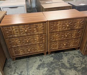 New assembled set of 2, Nightstand with 3 Drawers, Farmhouse Bedside Table with Elegant Patterns, Industrial Night Stand End Table for Bedroom, Brown$120La Mirada, CA